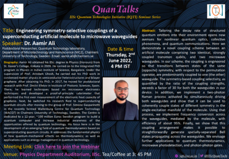 Aamir gives a talk in QuanTalks Seminar Series at IISc Bangalore